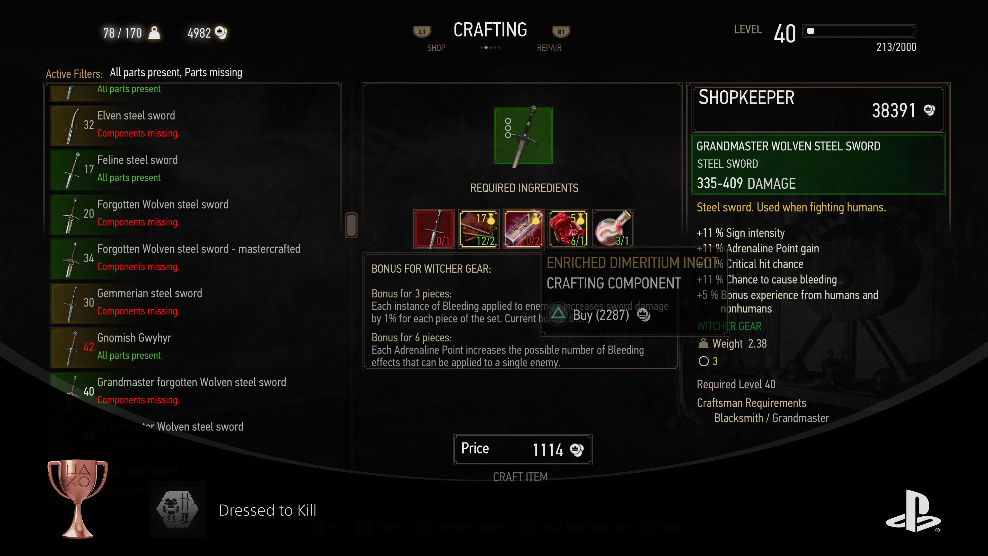 Alchemy plays a vital role in combat, serving as more than just a secondary mechanic. Potions provide temporary buffs, such as increased reflexes, night vision, or accelerated health regeneration. Some, like Thunderbolt, enhance attack power, while others, such as White Raffard’s Decoction, grant instant healing. More powerful than standard potions, decoctions are made from monster mutagens and offer long-lasting effects, though they come with high toxicity costs. Oils, another essential part of Geralt’s arsenal, are applied to swords before battle to increase damage against specific enemy types. The strongest oils grant critical hit bonuses, making preparation a key aspect of success. Bombs offer additional tactical advantages, such as stunning enemies, countering powerful monsters, or even freezing opponents in place. Mastering alchemy allows players to fight more efficiently, reinforcing the idea that preparation is just as important as skill in battle.