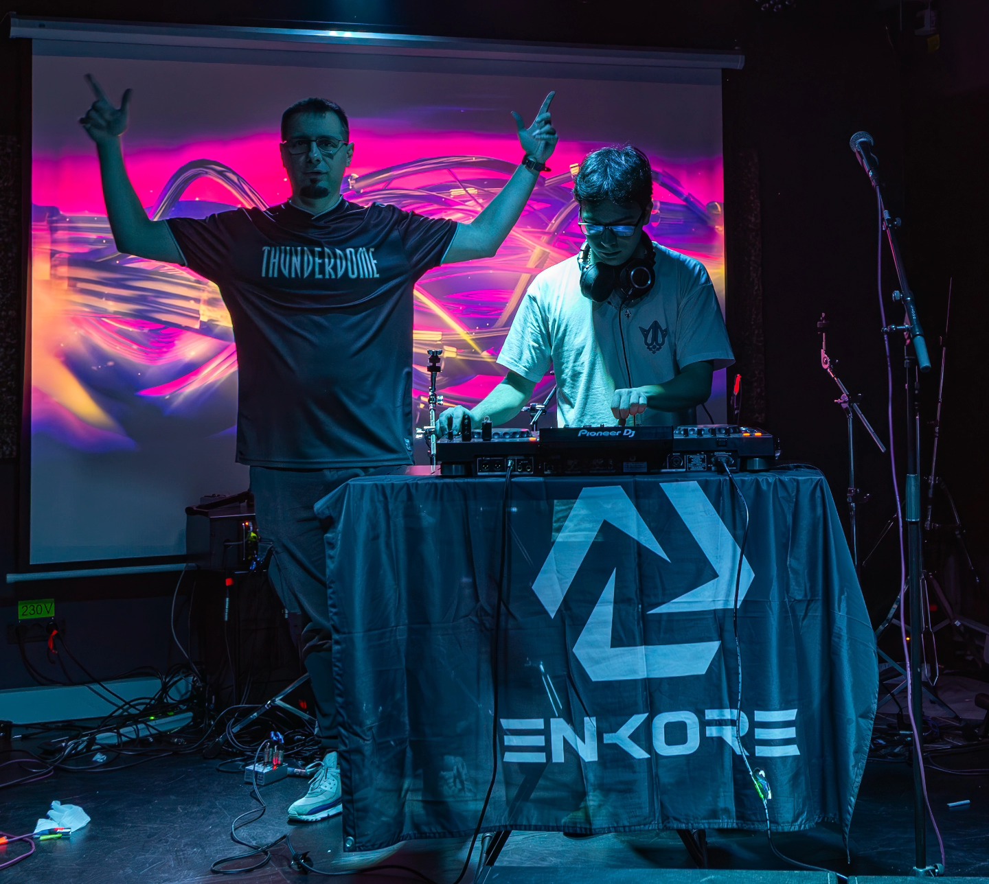 Ca un side info, în ianuarie 2023 mi-am lăsat partea introvertită acasă și am zis, totuși, să merg într-un club din București în care se băga muzică hard. Am ajuns la un eveniment organizat de EnKore: Hard Rave, în care au adus 2 DJ internaționali de hardcore și unde alt producer foarte skilled de hardstyle din România, Neolux, a avut debutul. Eram atât de hyped încât am ajuns cu vreo 15 minute după ce a început evenimentul. Eram singur și afară era o ploaie foarte nasoală de iarnă, dar după puțin timp s-a umplut clubul și a început o atmosferă total insane. În momentul acela nu știam să mixez și mă subestimam extrem de mult în privința skill-urilor mele, așa că nu am contactat organizatorii, ci doar am mers la evenimentele lor de-a lungul anului ca vizitator.