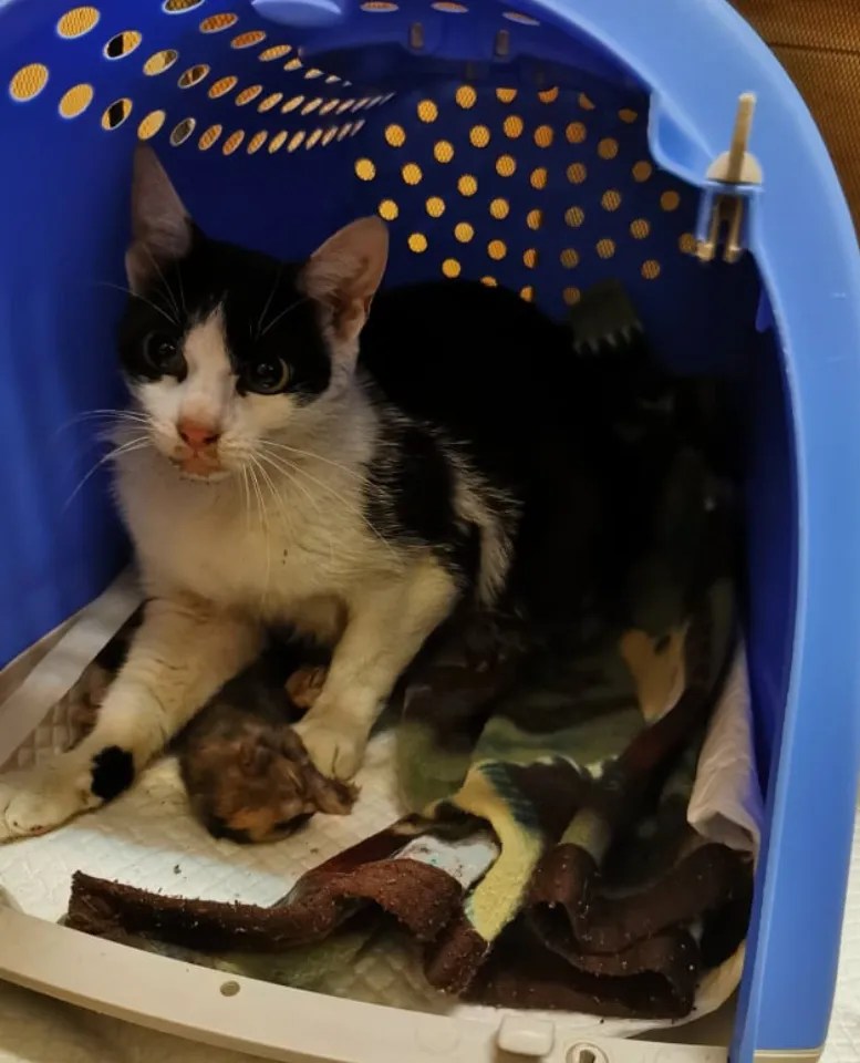 Brave, motanul găsit lovit de mașină, într-o baltă de sânge, pe șosea