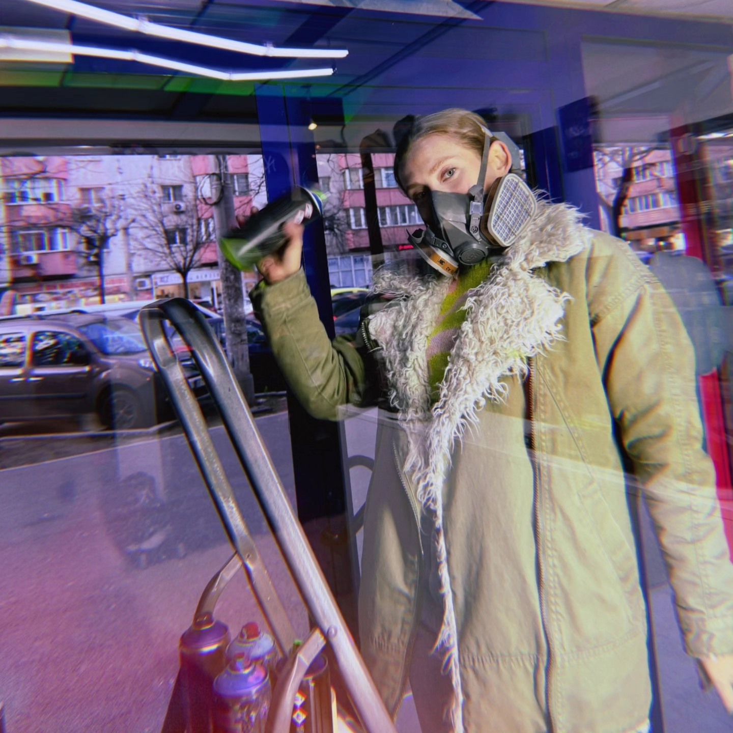 Din acest demers a pornit o explorare continuă, un du-te-vino constant între stradă și studio, dar și un schimb de experiență între modul de lucru inițial și tehnicile noi. De exemplu, din studio am preluat ochiul lucrat realist și l-am aplatizat, transformându-se apoi într-un element semnătură pentru mine în murale. Lucrul cu spray-ul a însemnat în primă fază abstract și plat, până am învățat tehnica necesară încât să pot lucra realist cu spray-ul.