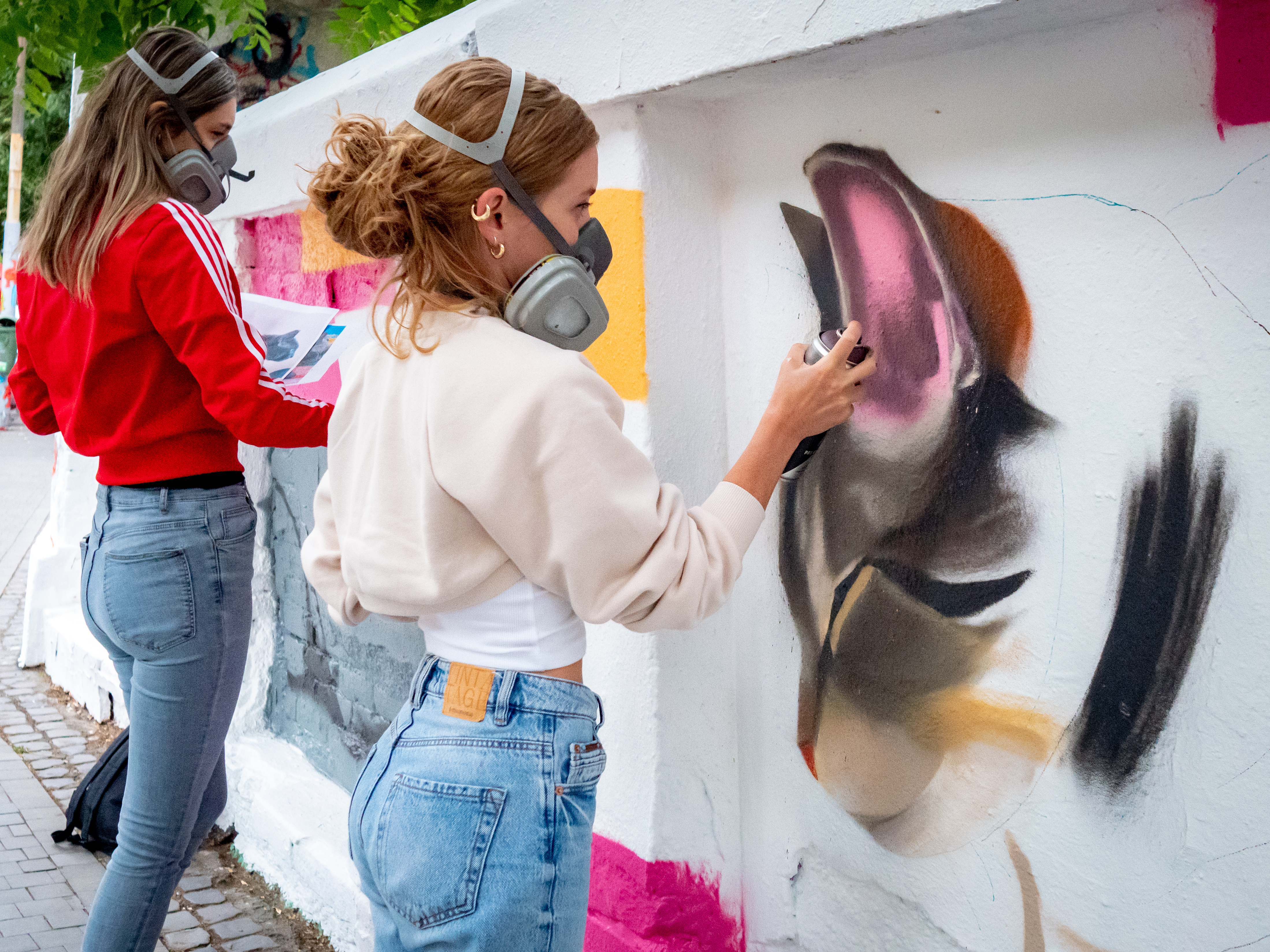 Ingrid-Odette Maschek: În momentul de față nucleul echipei suntem eu și Andreea Oprișan (colega mea de la început), iar în echipa extinsă avem alte fete colaboratoare: Alina Dima, Ana Diac (lavabilă) și Ana Huțana (Iași, spray). Pentru că proiectele veneau încontinuu, am căutat o a treia fată, care a fost parte din crew doar sporadic (din cauză de lipsă de timp, alte priorități etc.). Din 2025 avem un colaborator oficial – BMRE, un tip fantastic cu care ne înțelegem foarte bine. L-am avut ca artist invitat în Fiți cu-minți Creative Fest 2025, am făcut click și ne-a plăcut cum lucrează. Am considerat că putem extinde colaborarea oficial, dar să păstrăm în același timp ideea nucleului de crew ca fiind de fete.